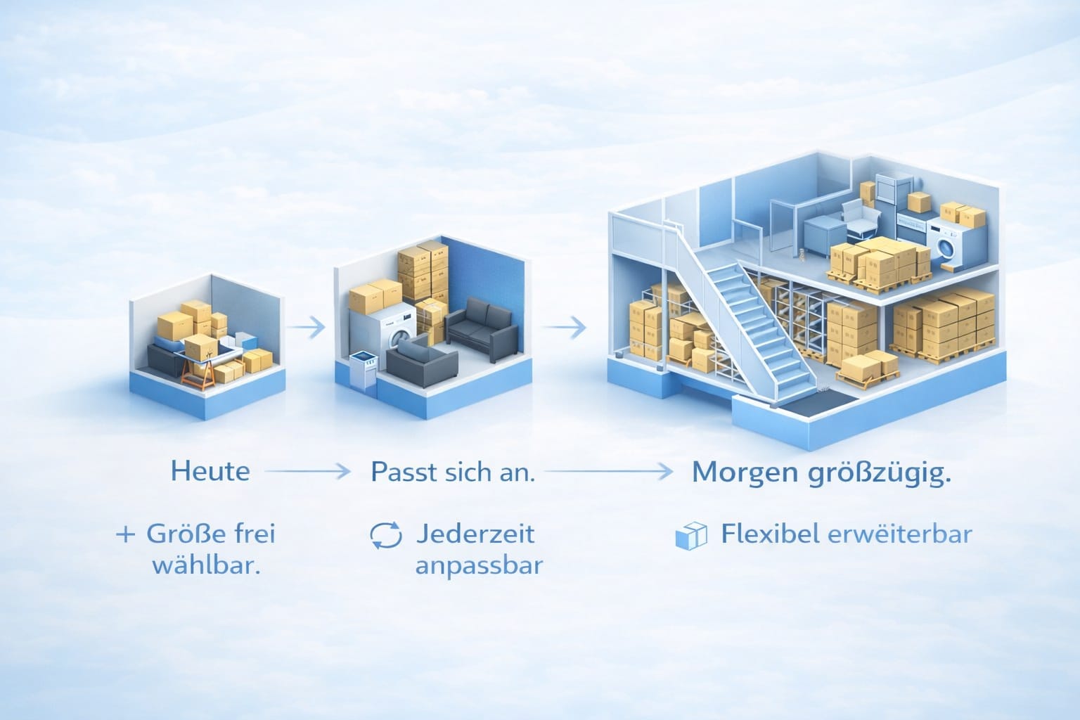 Die Kosten richten sich nach Größe, Laufzeit und aktueller Verfügbarkeit. In vielen Fällen ist externer Lagerraum deutlich effizienter kalkulierbar als langfristige Objektanmietungen.
