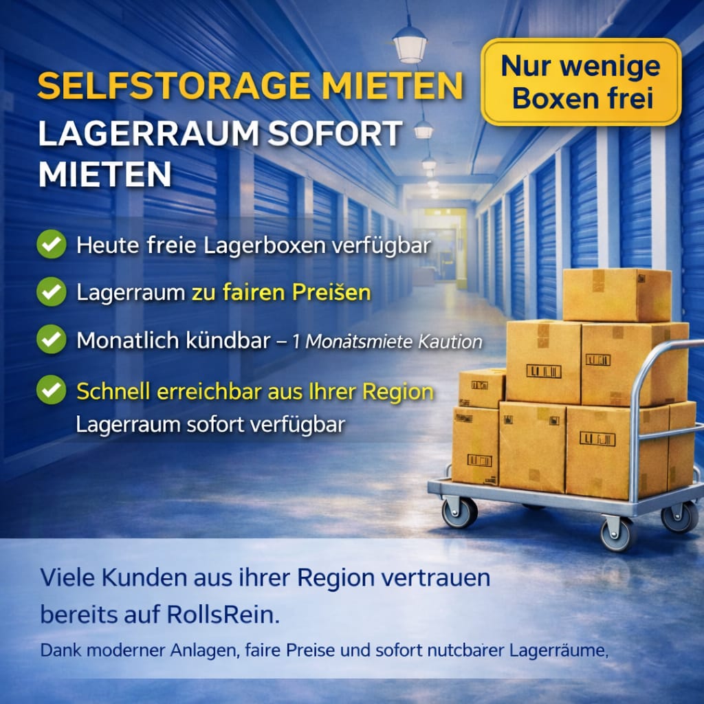 Ob kurzfristige Lagerung beim Umzug, Renovierung oder langfristiges Selfstorage für Ihr Unternehmen: Rollsrein bietet Ihnen individuelle Lagerlösungen in verschiedenen Größen – optimal erreichbar für Kunden aus Gelnhausen und Umgebung.